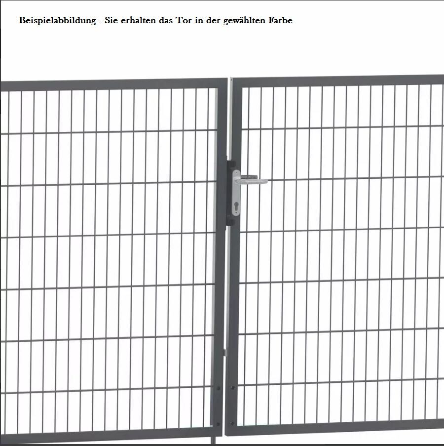 | Basic | - Torfüllung: 6/5/6mm-Doppelstabmatte - Rahmen: 30x30mm Quadrat-Stahlrohr - Torpfosten: 60x60mm-Quadrat-Stahlrohr | - Montagematerial - Bei 2-flügeligen Toren zus. Bodenriegel, Gegenblech, Anschlag | - Besonders günstiger Preis | ||||