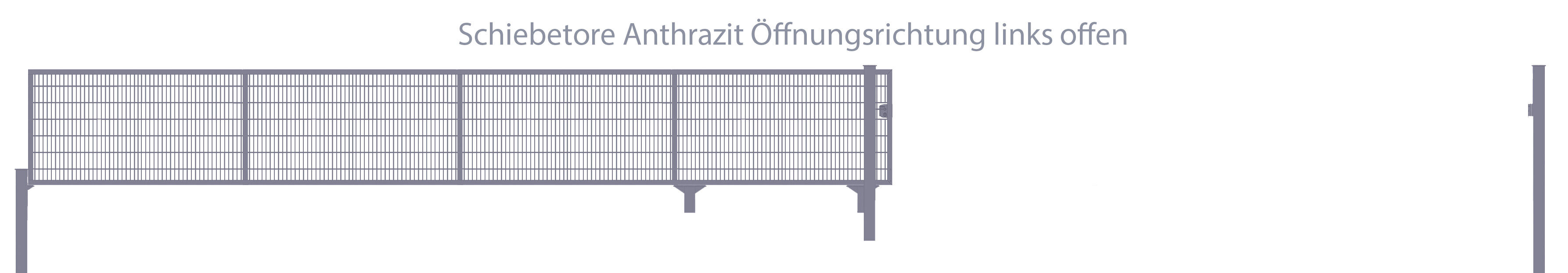 Produktinformationen Schiebetor Breite: 250cm; Höhe: 180cm; Anthrazit; 6/5/6mm Doppelstabmatten-Füllung; Öffnet nach links