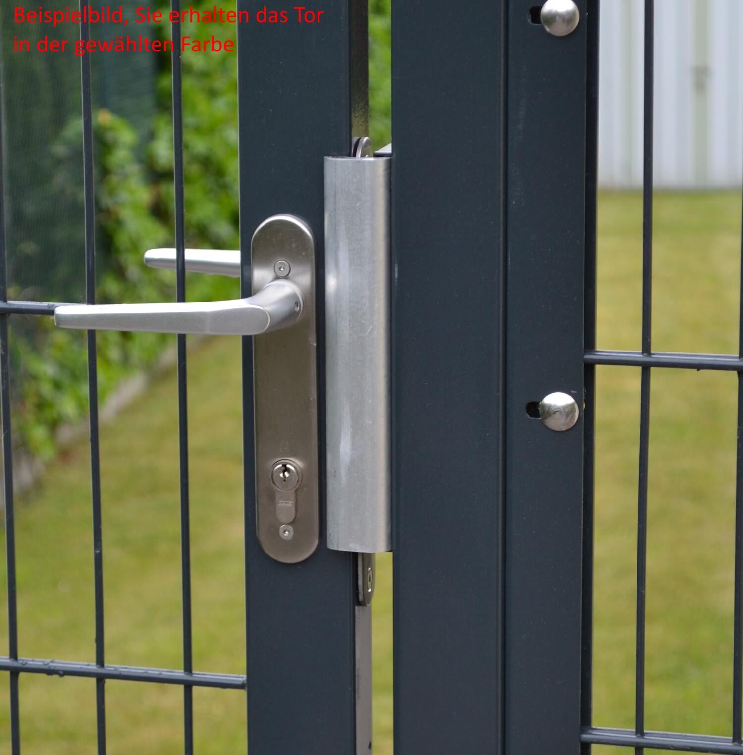 Im Unterschied zu den Einfahrtstoren der Basic-Line werden die Einfahrts- und Zauntore der Premium-Linie immer inklusive einem Rahmenschloss und einer hochwertigen Drückergarnitur geliefert. Lediglich der Zylinder muss noch separat erworben werden, den Sie aber auch im Bereich Tor-Zubehör finden.
