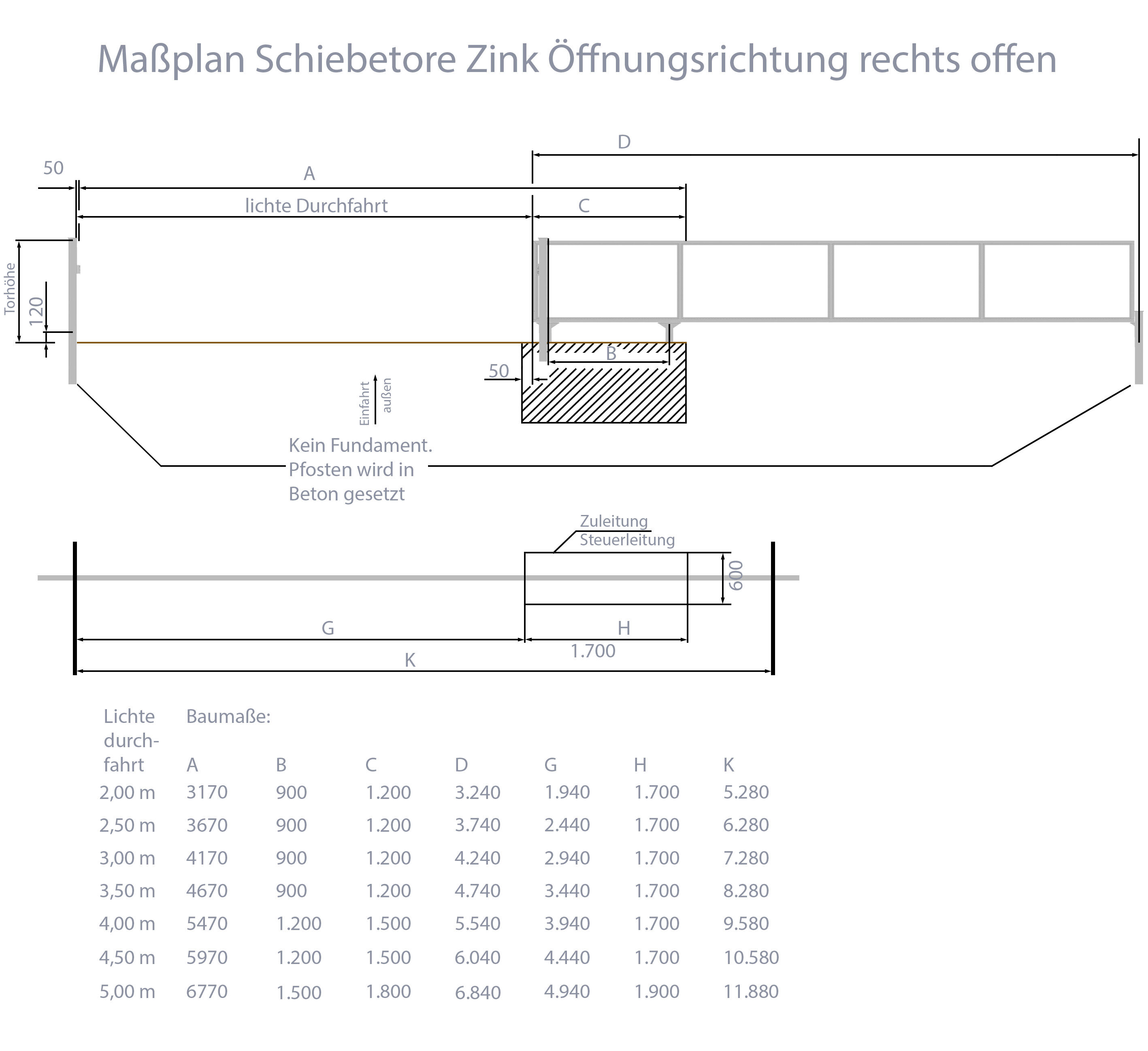 Torflügel, Öffnungsrichtung, Höhe und Breite vom Schiebetor