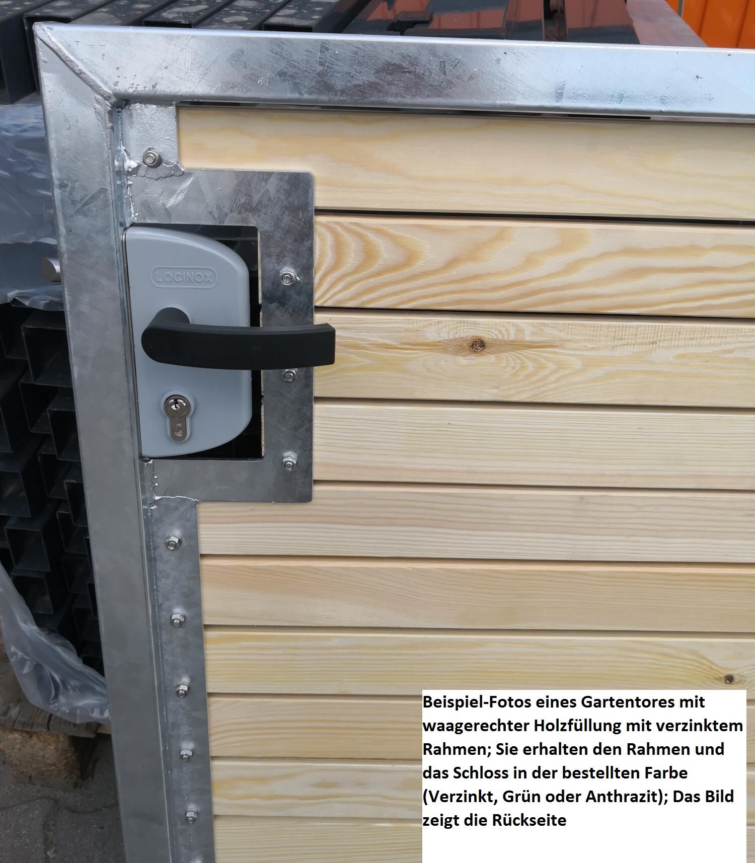 Lieferumfang vom 1-flügeliges Gartentor Premium Line mit waagerechter Holzfüllung Verzinkt B: 100 cm x H: 200 cm: