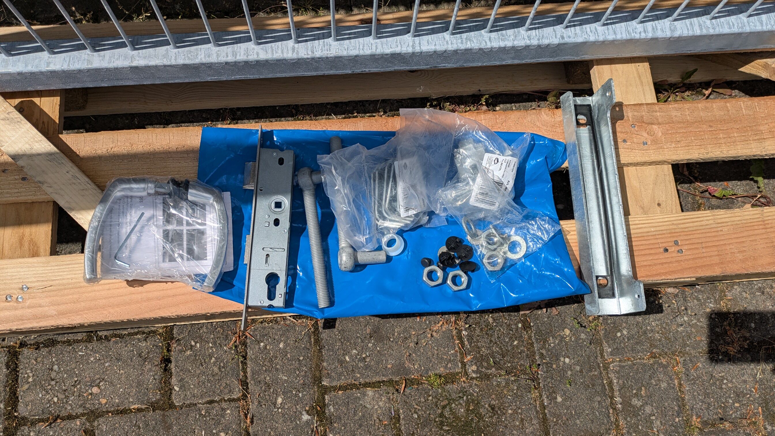 Im Lieferumfang vom Gartentor / Zauntür Classic Strong (Stabmattentor) Verzinkt Breite 150 cm Höhe 160 cm ist bereits ein Rohrrahmenschloss enthalten, ebenso eine hochwertige Drückergarnitur aus Aluminium. Montagematerial ist selbstverständlich dabei, alle Schrauben, Muttern und Unterlegscheiben werden in hochwertiger Edelstahlausführung geliefert. Optional ist eine Nachrüstung des Profilzylinders jederzeit möglich. Zaunmatten können mit den ebenfalls schon enthaltenen Zaunmattenbefestigungen an den Torpfosten montiert werden, die Positionierung kann individuell über selbstschneidende Schrauben erfolgen.